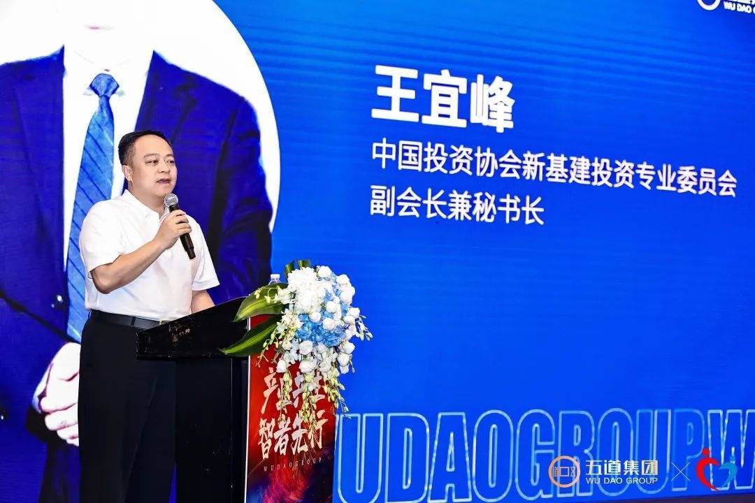 五道集团作为中国投资协会的副会长单位,本次活动特别邀请到中国投资协会新基建投资专业委员会副会长兼秘书长王宜峰莅临现场。王宜峰秘书长的出席不仅是对五道集团的高度认可,更为活动增添了重磅分量。他在致辞中,对五道集团在产业发展与投资领域的卓越成就给予了高度评价,强调了五道集团在推动产业共生、促进经济发展中所发挥的积极作用,同时期待五道集团能够在产业投资领域持续深耕,为行业树立新标杆。