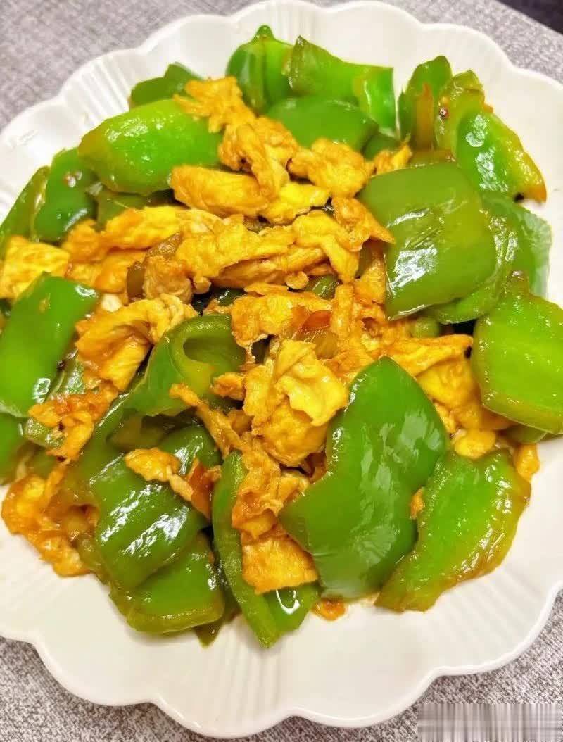 4、倒入炒好的鸡蛋,加入1勺生抽、少许盐调味,快速翻炒均匀,让鸡蛋和尖椒的味道融合在一起即可出锅。
