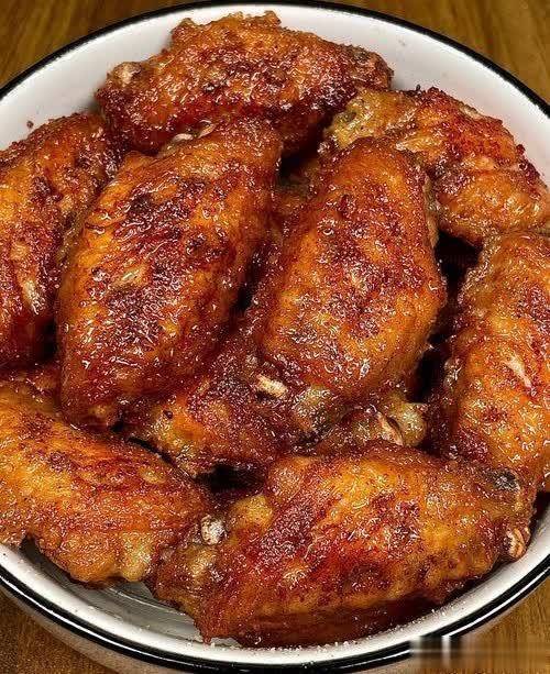 3.油烧热后,把鸡翅轻放进锅里,慢慢煎等到两面都金黄酥脆了,就盛出来