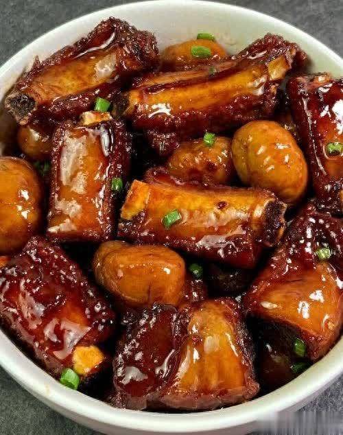 6. 加入板栗:将板栗加入锅中,继续炖煮20-30分钟,直到板栗熟软,排骨和板栗入味。